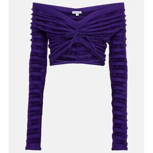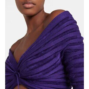 ALAÏA 3d Velvet Top in Ultraviolet 42 New Womens Cropped Knit Blouse
