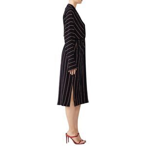 A.L.C. 'Nico' Surplice Long Sleeve Striped Silk Dress, Size 4, Black/White/Brown