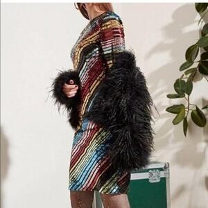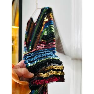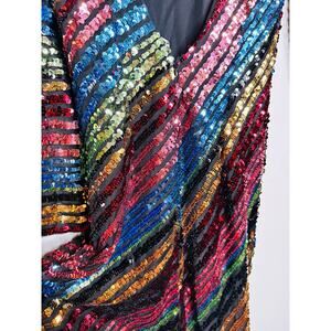 ALCOOLIQUE Peyton Tubolar Black Rainbow Stripe Sequin Mesh Backless Mini Dress10
