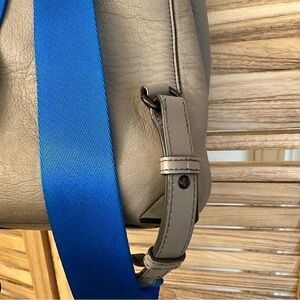 ALEXANDER WANG Prisma leather backpack,. The design boasts no external pockets but features an internal pocket. IIt is crafted from a combination of leather, nylon, and suede. The bag comes with a dust bag for safekeeping.blue straps