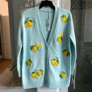 ALICE + OLIVIA BRADFORD LEMON EMBROIDERED GRANDPA CARDIGAN