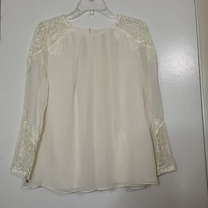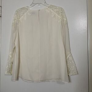 ALICE + OLIVIA IVORY LACE DETAIL LONG SLEEVE SILK BLOUSE TOP SIZE SMALL