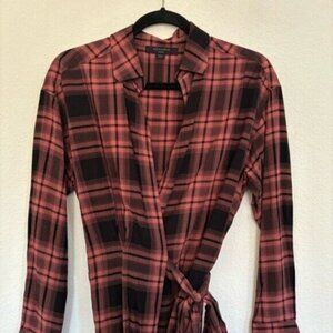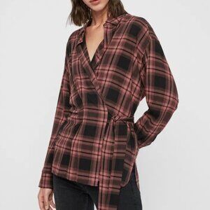 ALL SAINTS Miki Check Shirt Wrap Long Sleeve Top