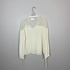 Gorgeous silk shirt with lace a top the shoulders and chest.