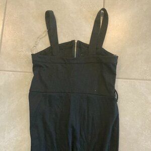 Black skinny leg jumpsuit. Zipper in front.