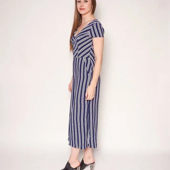 AMANDA UPRICHARD Navy Amery Striped Jumpsuit Small