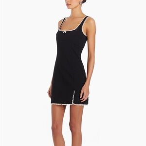 AMANDA UPRICHARD VALETTA DRESS {$238 MSRP} Black Ivory Lace Trim White Bow XS