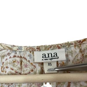 ANA A New Approach X-Small Peasant Botanical Top Boho V-Neck Cotton Rayon Womens
