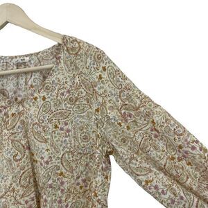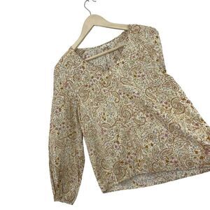 ANA A New Approach X-Small Peasant Botanical Top Boho Bohemian Cottagecore V-Neck Cotton Rayon Womens Lightweight Pullover
