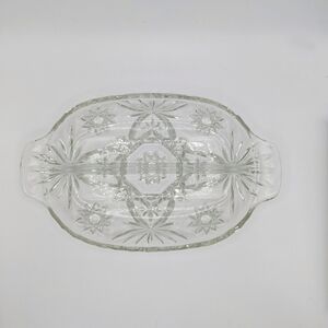 ANCHOR Hocking Star of David Clear Pressed Glass Divided Relish Dish / Tray