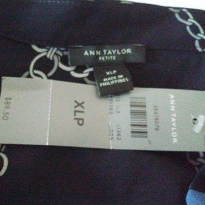 ❤️ANN TAYLOR Blouse, Size XLP Navy White Yellow New W/ $89.50 TAG