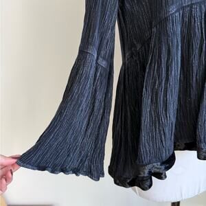 ANTHROPOLOGIE ERI + ALI BLACK FLOWY TOP VELVET TRIM BELL SLEEVES XS