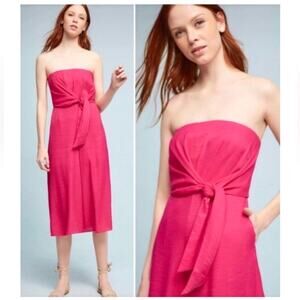 ANTHROPOLOGIE MAEVE Bright Pink Waist Tie Strapless Jumpsuit Romper – Size 6