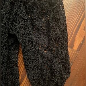 Stunning Maeve Anthropologie black off shoulder crocheted lace top with lining attached underneath!