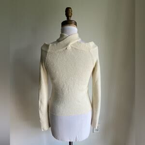 ANTHROPOLOGIE MOTH IVORY COLD SHOULDER TURTLE NECK SWEATER SIZE XS