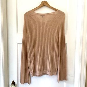 APT. 9 Metallic Champagne Gold Ribbed Lace Sweater L Bell Sleeve Holiday Party