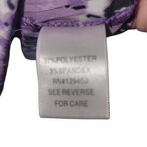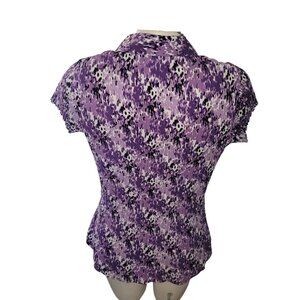 APT. 9 Womens Purple Patterned Short-Sleeve Collared Blouse With Asymmetrical He