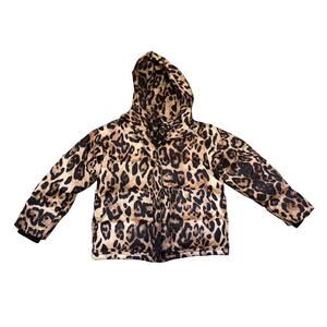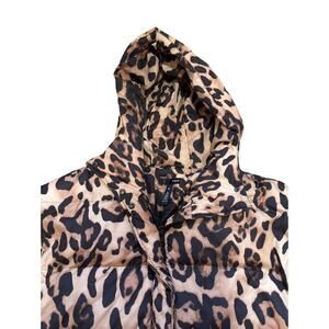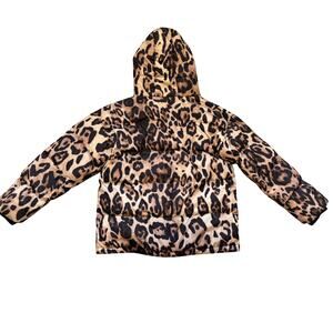 AQUA Leopard Print Hooded Puffer Jacket | Bold Animal Print Coat | Size S