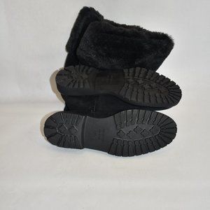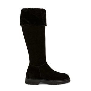 Magnolia Weatherproof Suede Boot In Black Suede With Shearling Cuff Inner Side Zip-Up Closure Lightly Padded Leather Insole Rubber Lug Sole