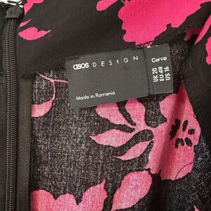 ASOS Design Curve Black Pink Floral Asymmetrical Ruched Midi Skirt Size 16