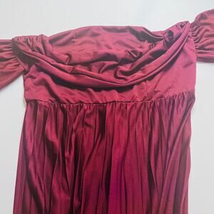 ASOS Draped Neck Off Shoulder Pleated Maxi Dress Size 10 Burgundy NEW