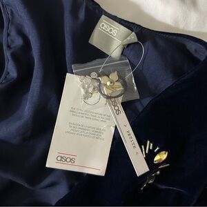 ASOS Petite Floral Beading Wrap Low Cut Velvet Mini Dress NWT Sz. 4