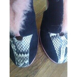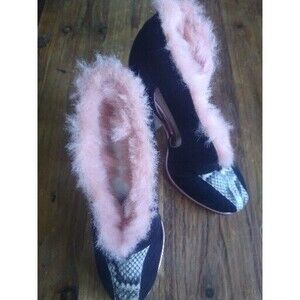 Elevate your shoe collection with these ASOS Vintage Retro Glam Chunk Heel shoes. Designed with a closed toe and slip-on closure, these shoes feature a stunning combination of pink suede and faux fur accents with a snakeskin pattern. The breathable strappy design makes them perfect for summer, fall, and spring occasions such as weddings, parties, formal events or even for traveling.
