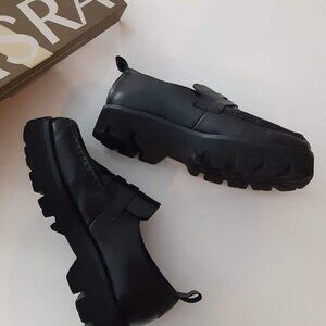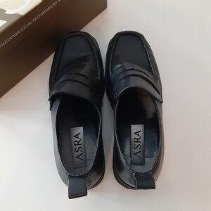 Asra square toe chunky loafers in black leather -size 7 1/2