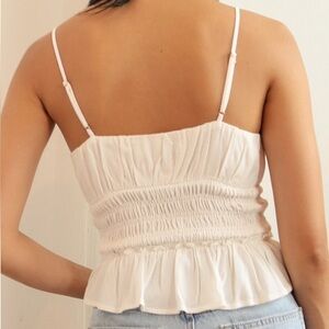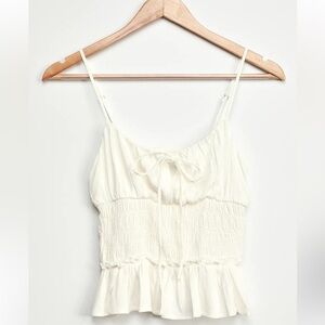 Darling spaghetti strap smocked summer tank with darling tie front and adjustable straps. EUC, no flaws to note.
