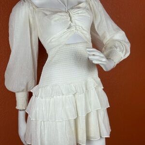 ASTR THE LABEL WHITE MARIETTA CINCHED BUST CUTOUT MINI DRESS Small. C18