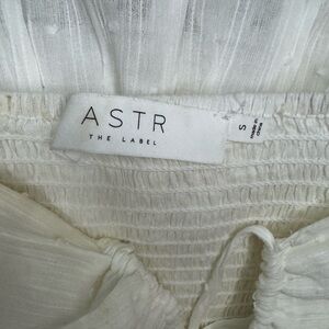 The Astr White Mini Dress is a stunning choice for wedding guests and cocktail events, featuring elegant 3/4 bishop sleeves and a chic keyhole neckline. Its sundress style offers a modern twist on a classic design, with a flowy silhouette that falls gracefully above the knee. Crafted from a light, airy fabric, this dress embodies a romantic and feminine aesthetic, perfect for making a stylish statement in good condition