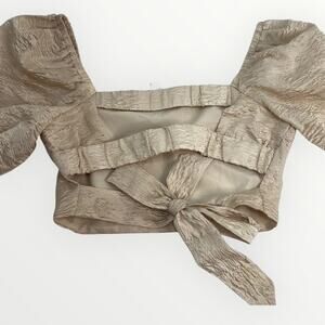 ASTR The Label Tassia Jacquard Puff Sleeve Tie Back Champagne Top SZ L NWT Chic
