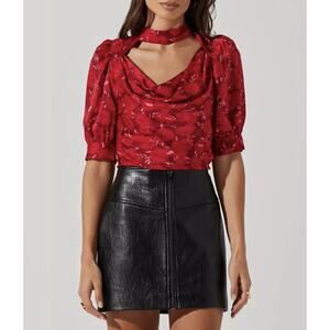 ASTR the Label Women’s Medium FLORAL MOCK NECK COWL DRAPE TOP in Red Floral