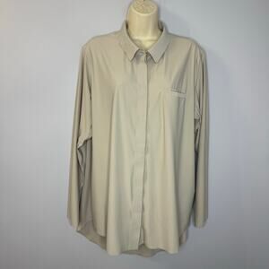 ATHLETA Urbanite Top Blouse Shirt Stretch Beige Commute Work Travel Sz XL