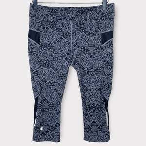 ATHLETA | black & gray geometric print capri crop leggings | Women's size small