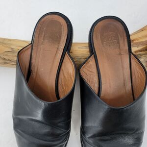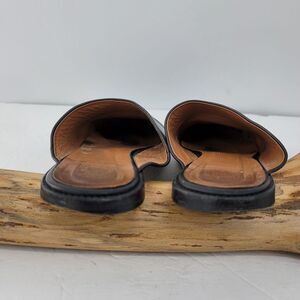 Black leather mules in a western styling. flat sole. does show signs of wear. structurally sound. Preloved condition. All sections of interest as well any known flaws have been documented in the photos and noted as thoroughly as possible. if there are no known flaws, none will be noted. Please feel free to ask any questions before purchase 🙂.