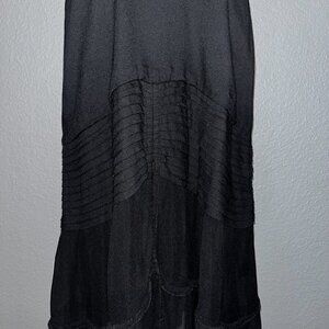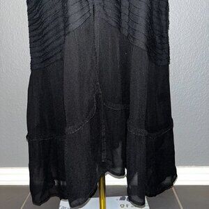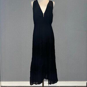 AURA Black Tiered Boho Maxi Dress with Deep V Neck Sheer Ruffled Skirt EUC - L
