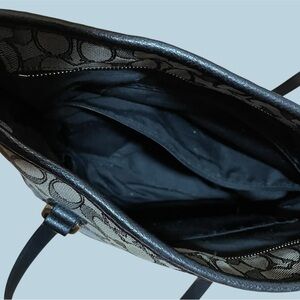 Gray and black shoulder bag by Coach, their signature colors make this a huge asset to any womans wardrobe.  12”w x 10”h