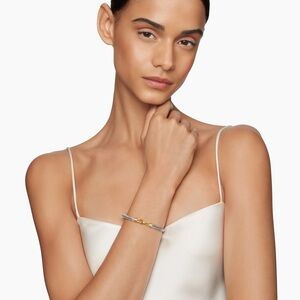 Elevate your jewelry collection with this iconic David Yurman Cable Bracelet, a timeless piece inspired by the elegance of equestrian design. Handcrafted with sterling silver and accented by 14K yellow gold, this 5mm bracelet reflects the brand’s signature twisted cable design with a 14k gold hook clasp closure; it’s perfect for stacking or wearing solo for a refined statement.