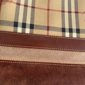 In excellent condition, never worn. 100% authentic Burberry bag. Stylish plaid tote bag with rich brown suede leather accents. Perfect for everyday use! make me an offer!
