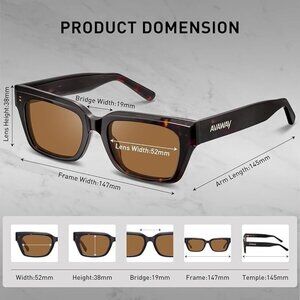 AVAWAY Polarized Rectangle Sunglasses Tortoise Brown UV400 Unisex Acetate NEW