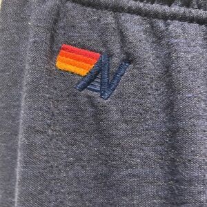 Aviator Nation smiley sweatpants in navy. Minor wear to the faces and minor wash wear, mainly these aren’t as soft as they are when new. No stains or rips.