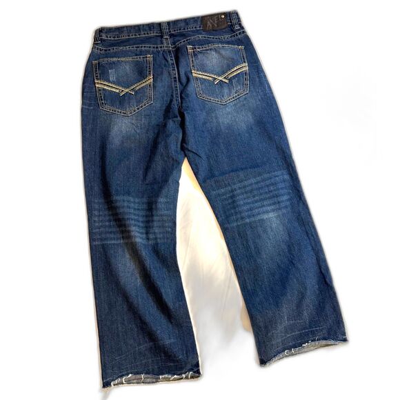 AXEL Men's Jeans sz38/32 inseam 30" Distressed Relaxed Fit Straight Leg Raw Hem