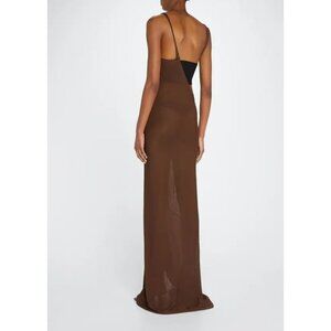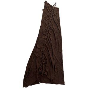 AYA MUSE Birch Mesh Asymmteric Lace-Up Maxi Dress in Brown