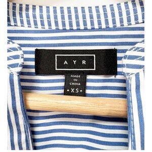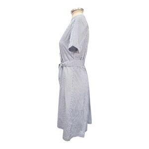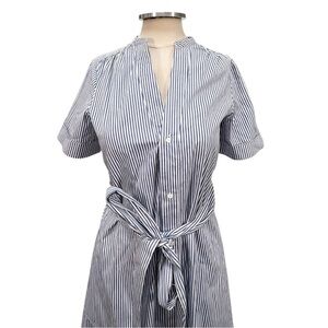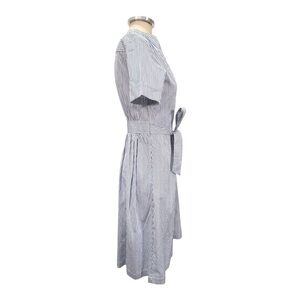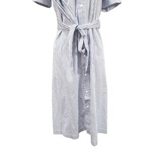AYR The Villa Short Sleeve Belted Midi Shirt Dress Blue Stripe Size XS