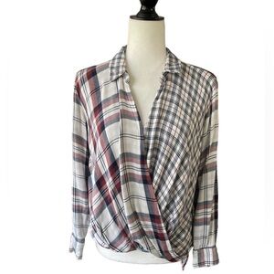 Abercrombie & Fitch Crisscross Front Top Mixed Plaid Flannel