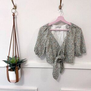 Abercrombie & Fitch Peach Floral Print Tie-Front Linen Blend Blouse Top XS