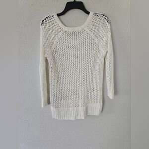 Abercrombie Fitch Sweater Womens XS White Open Knit Hi Low Oversized Excellent