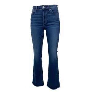 The product is a pair of Abercrombie & Fitch Ultra High Rise Flare Jeans in a solid blue color. These size 26/2 jeans are made of a blend of polyester, spandex, and cotton with a denim fabric type. They feature a zip and button closure, pockets, and a 32-inch inseam, providing both comfort and stretch. The high rise and flared style offer a trendy and flattering fit for women. The brand's reputation for quality and style makes these jeans a desirable addition to any wardrobe.
