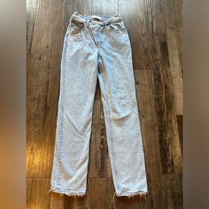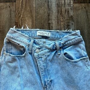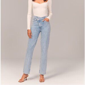 Abercrombie Ultra High Rise 90s Straight Jean Light Wash Cross Waist Size 24. Excellent condition, no flaws! 99% cotton, 1% elastane.